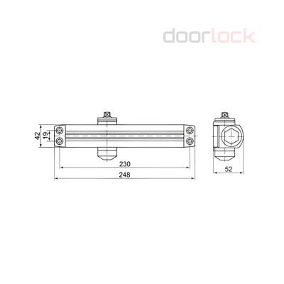 а дверь устанавливается непосредственно на доводчик при помощи шпинделя и специальных