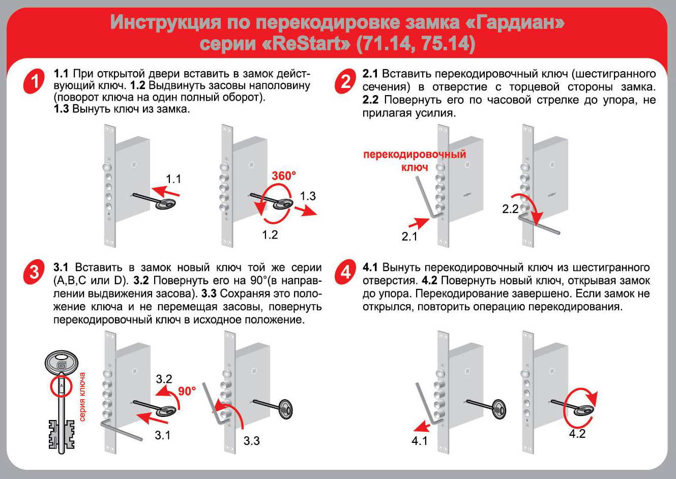 Врезной сувальдный перекодировочный замок ГАРДИАН 71.14Т (серия ReStart)