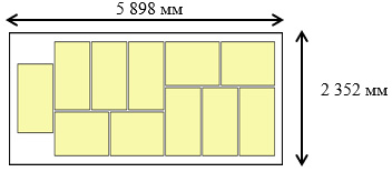 В стандартном контейнере 20′ DC, который уже на 10 сантиметров, размещение поддонов выглядит следующим образом: