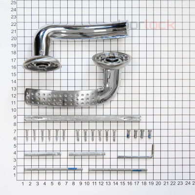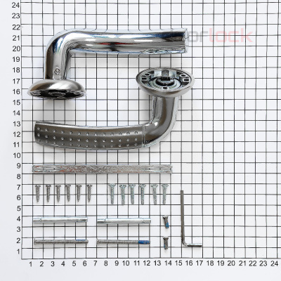 Ручка (2 шт.), шток 8х105 мм., стяжные винты и втулки (2 шт.), саморезы (12 шт.)