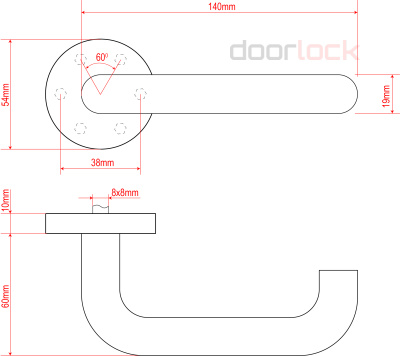 Ручка дверная DOORLOCK V 038/F/9/C/SS PZ, U-form, шпиндель 9мм, BL черный