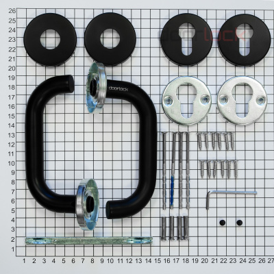 Ручки (2 шт.), ключевины (2 шт.) шток 9х130 мм., стяжные винты и втулки (2 шт.), саморезы