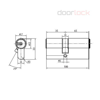 Комплектация Цилиндровый механизм, фиксирующий винт, 5 ключей